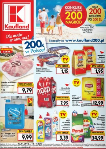 {loadposition linkKaufland} Nowa gazetka promocyjna marketu Kaufland. Polecane promocje z gazetki Kaufland: Jogurt kremowy Danone Fantasia - 1,15 zł. Płyn do mycia naczyń Pur 750 ml - 3,39 zł. Proszek do prania Persil 5,6 kg - 34,99 zł. …
