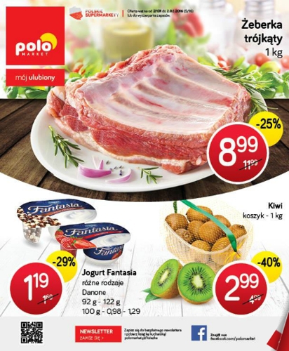 {loadposition linkPoloMarket} Nowa gazetka promocyjna Polo Market. Polecane promocje z gazetki Polo Market: Żeberka trójkąty 1 kg - 8,99 zł. Jogurt Danone Fantasia różne rodzaje - 1,19 zł. Kiwi koszyk 1 kg - 2,99 zł. Oferta ważna od…