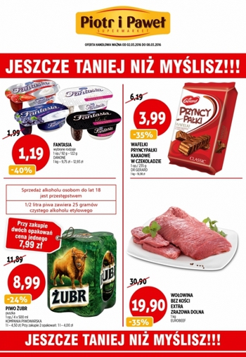Nowa gazetka promocyjna sieci sklepów Piotr i Paweł - "Jeszcze tanie niż myślisz". Polecane promocje z gazetki Piotr i Paweł: Jogurt Danone Fantasia różne rodzaje - 1,19 zł. Wafelki Pryncypałki kakaowe w czekoladzie Dr Gerard 235 g -…