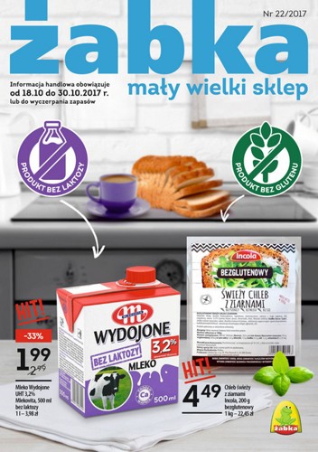 Nowa gazetka promocyjna sieci sklepów Żabka. Polecane promocje z gazetki Żabka: Mleko Wydojone bez laktozy Mlekovita 500 ml - 1,99 zł. Chleb świeży bezglutenowy z ziarnami Incola 200 g - 4,49 zł. Jogurt naturalny bez laktozy Zott Primo 180…