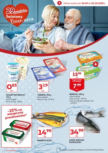 {loadposition linkAuchan} 'Światowy Dzień Serca' - nowa gazetka promocyjna sieci marketów Auchan. Polecane promocje z gazetki Auchan: Jogurt naturalny 175 g - 0,85 zł. Twaróg 250 g - 3,19 zł. Makrela duża 1 kg - 14,99 zł.…