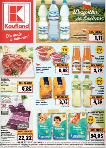 {loadposition linkKaufland} Nowa gazetka promocyjna marketu Kaufland - "Wszystko, co kochasz". Polecane promocje z gazetki Kaufland: Karkówka wieprzowa bez kości 1 kg - 9,85 zł. Olej Kujawski 1 L - 4,59 zł. Jogurt owocowy Bakoma Premium Gold 140 g…