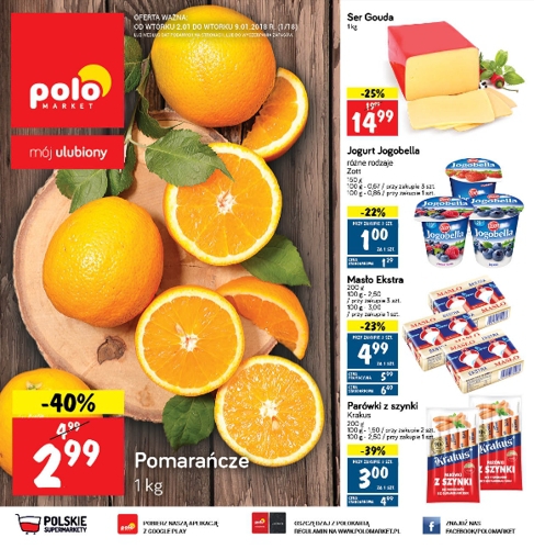 {loadposition linkPoloMarket} Nowa gazetka promocyjna Polo Market. Polecane promocje z gazetki Polo Market: Pomarańcze 1 kg - 2,99 zł. Ser Gouda 1 kg - 14,99 zł. Jogurt Jogobella Zott 3x150 g - 3 zł. …