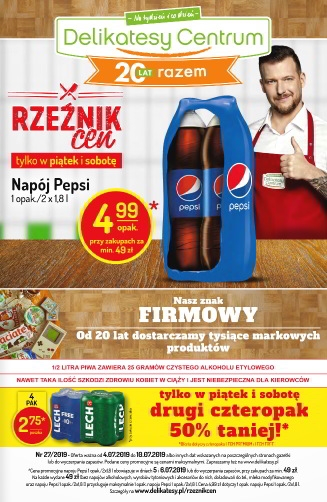 {loadposition linkDelikatesyCentrum} 'Rzeźnik cen' - nowa gazetka promocyjna Delikatesów Centrum. Polecane promocje z gazetki Delikatesów Centrum: Napój Pepsi 2x1,8 L - 4,99 zł*. Kabanosy Krakus 180 g - 8,90 zł. Kiełbasa głogowska z szynki Morliny 100 g - 2,09…