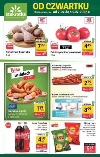 Nowa gazetka promocyjna sieci sklepów Stokrotka. Polecane promocje z gazetki Stokrotka: Obiadowa ćwiartka z kurczaka 1 kg - 5,99 zł*. Ziemniaki 1 kg - 1,59 zł. Kabanosy Tarczyński 100 g - 2,99 zł. * - cena promocyjna z…