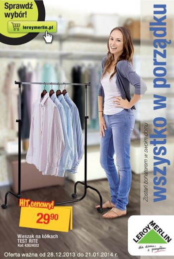 {loadposition linkLeroyMerlin} Nowa gazetka promocyjna Leroy Merlin - "Wszystko w porządku". Polecane promocje z gazetki Leroy Merlin: Wieszak na kółkach TEST RITE - 29,90 zł. Świetlówka energooszczędna LEXMAN 15 W - 9 zł. Kabina z hydromasażem NAOMI IMPERIAL -…