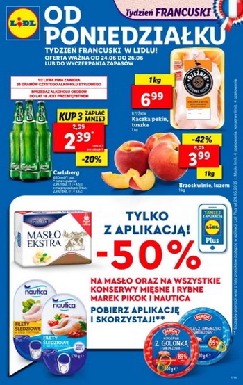 {loadposition linkLidl1} 'Od poniedziałku tydzień francuski w Lidlu' - nowa gazetka promocyjna sieci sklepów Lidl. Polecane promocje z gazetki sklepów Lidl: Kaczka Pekin Rzeźnik 1 kg - 6,99 zł. Piwo Carlsberg 3x500 ml - 7,17 zł. Brzoskwinie 1…