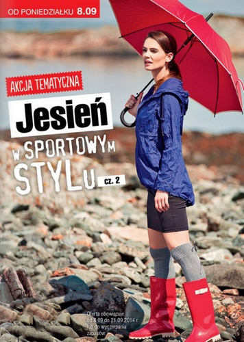 {loadposition linkBiedronka} Nowa gazetka promocyjna sieci handlowej Biedronka - "Jesień w sportowym stylu cz. 2". Polecane promocje z gazetki sieci Biedronka: Płaszcz przeciwdeszczowy damski - 44,99 zł. Kalosze damskie - 29,99 zł. Parasol - 19,99 zł. Oferta ważna…