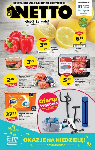 {loadposition linkNetto} 'Oferta tygodnia' - nowa gazetka promocyjna sieci sklepów Netto. Polecane promocje z gazetki Netto: Papryka czerwona 1 kg - 3,99 zł. Cytryny 1 kg - 5,89 zł. Kapsułki do prania Vizir 38 sztuk -…