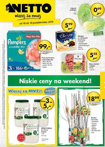 {loadposition linkNetto} Nowa gazetka promocyjna Netto - "Niskie ceny na weekend!". Polecane promocje z gazetki Netto: Drzewa owocowe - 19,99 zł. Kapusta pekińska 1 kg - 0,99 zł. Mięso mielone z indyka 480 g - 5,55 zł. …