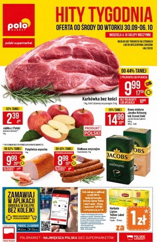 'Hity tygodnia' - nowa gazetka promocyjna sieci sklepów Polo Market. Polecane promocje z gazetki Polo Market: Karkówka bez kości 1 kg - 9,99 zł. Jabłka z Polski 1 kg - 2,39 zł. Kawa mielona Jacobs Kronung 500 g -…