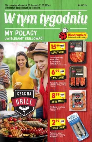 {loadposition linkBiedronka} Nowa gazetka promocyjna sieci handlowej Biedronka - "W tym tygodniu". Polecane promocje z gazetki sieci Biedronka: Zestaw grillowy wieprzowy w marynacie Czas na grill 1 kg - 15,99 zł. Karkówka rolowana Czas na grill 310 g -…