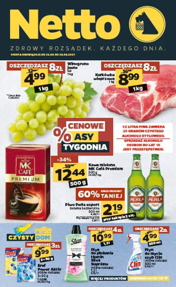 {loadposition linkNetto3} 'Cenowe asy tygodnia' - nowa gazetka promocyjna sieci sklepów Netto. Polecane promocje z gazetki Netto: Winogrono jasne 1 kg - 4,99 zł. Karkówka wieprzowa 1 kg - 8,99 zł. Kawa mielona MK Cafe Premium 500 g -…