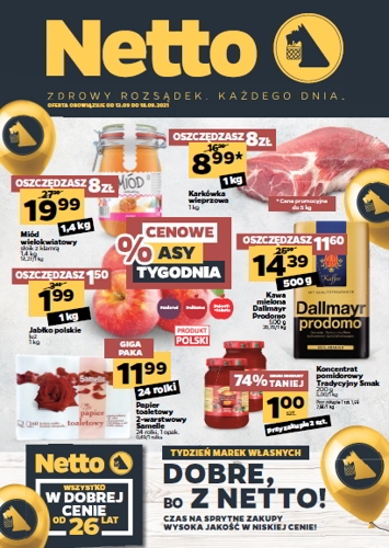 {loadposition linkNetto} 'Cenowe asy tygodnia' - nowa gazetka promocyjna sieci sklepów Netto. Polecane promocje z gazetki Netto: Miód wielokwiatowy 1,4 kg - 19,99 zł. Karkówka wieprzowa 1 kg - 8,99 zł. Kawa mielona Dallmayr Promodo 500 g - 14,39…