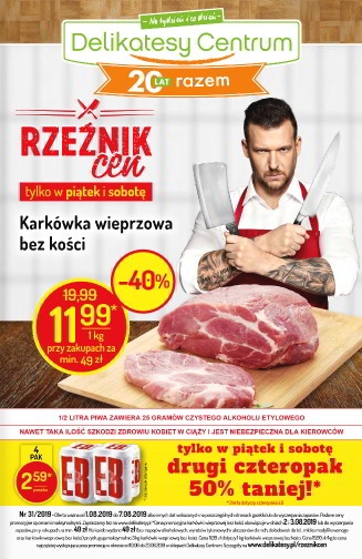 {loadposition linkDelikatesyCentrum} 'Rzeźnik cen' - nowa gazetka promocyjna Delikatesów Centrum. Polecane promocje z gazetki Delikatesów Centrum: Karkówka wieprzowa bez kości 1 kg - 11,99 zł*. Długopis licencyjny 1 sztuka - 2,99 zł. Piórnik tuba saszetka -…