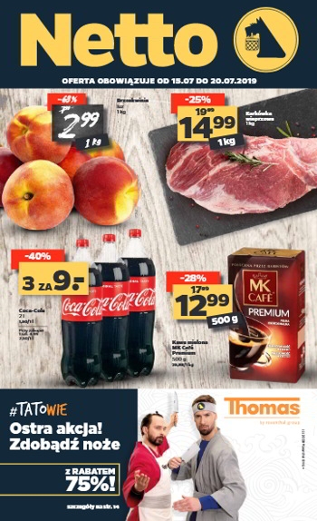 {loadposition linkNetto} Nowa gazetka promocyjna sieci sklepów Netto. Polecane promocje z gazetki Netto: Brzoskwinie 1 kg - 2,99 zł. Karkówka wieprzowa 1 kg - 14,99 zł. Kawa mielona MK Cafe Premium 500 g - 12,99 zł. …