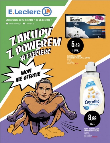 {loadposition linkEleclerc} 'Zakupy z powerem w E.Leclerc. Wow, ale oferta!' - nowa gazetka promocyjna sieci handlowej E.Leclerc. Polecane promocje z gazetki E.Leclerc: Karma dla kota Gourmet Perle Purina 4x85 g - 5,49 zł. Płyn do płukania tkanin Coccolino 2…