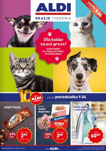 {loadposition linkAldi} 'Dla kotów za psi grosz! Asortyment dla naszych pupili w super cenie!' - nowa gazetka promocyjna Aldi. Polecane promocje z gazetki Aldi: Przekąska dla psa Wwuff 200 g - 3,99 zł. Karma półmokra dla psa Alnutra 1,5…