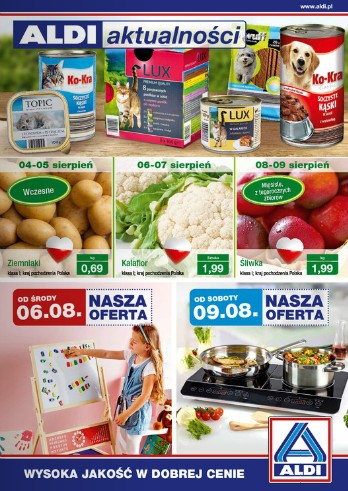 {loadposition linkAldi} Nowa gazetka promocyjna Aldi. Polecane promocje z gazetki Aldi: Karma sucha dla kota 1 kg - 4 zł. Karma sucha dla psa 3 kg - 13,89 zł. Pokrowiec na laptop - 24,99 zł. Oferta ważna od…