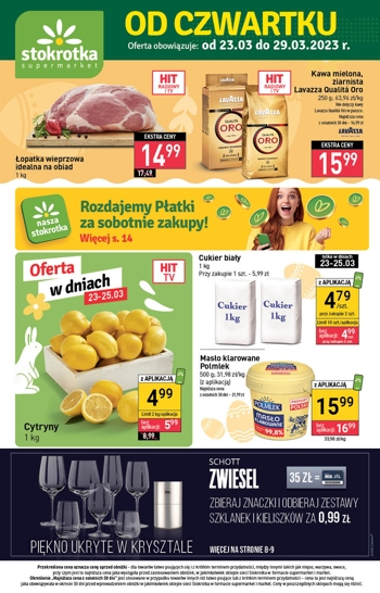 {loadposition linkStokrotka} Nowa gazetka promocyjna sieci sklepów Stokrotka. Polecane promocje z gazetki Stokrotka: Obiadowa ćwiartka z kurczaka 1 kg - 5,99 zł*. Kawa mielona lub ziarnista Lavazza Qualita Oro 250 g - 14,99 zł**. Cytryny 1 kg - 5,99…