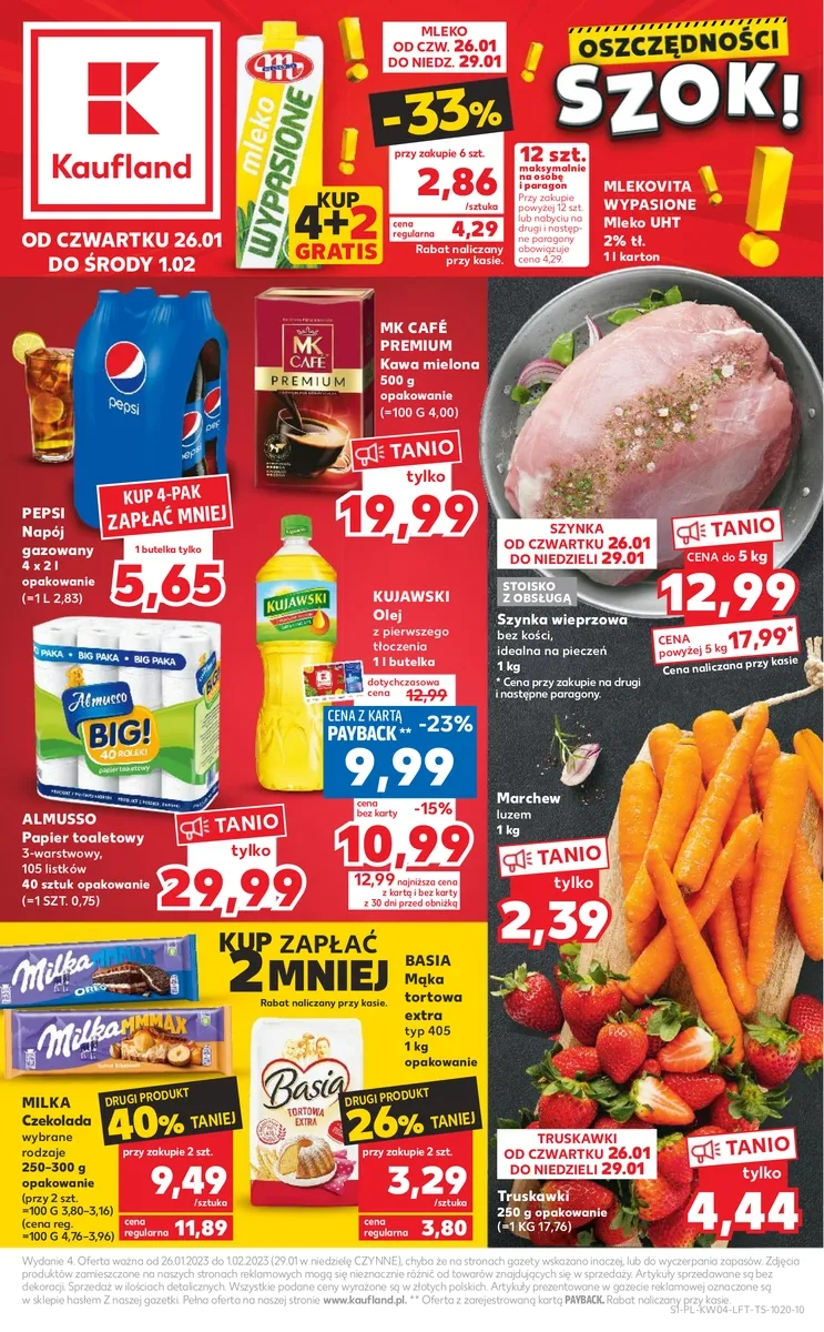 {loadposition linkKaufland2} 'Oszczędności szok!' - nowa gazetka promocyjna sieci marketów Kaufland. Polecane promocje z gazetki Kaufland: Napój gazowany Pepsi 2 L - 5,65 zł*. Kawa mielona MK Cafe Premium 500 g - 19,99 zł. Papier toaletowy Almusso 40 rolek…