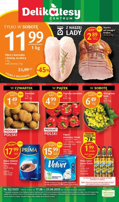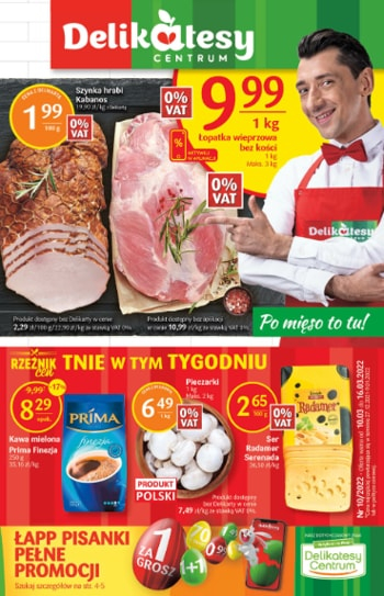 {loadposition linkDelikatesyCentrum2} 'Rzeźnik cen tnie w tym tygodniu' - nowa gazetka promocyjna Delikatesów Centrum. Polecane promocje z gazetki Delikatesów Centrum: Łopatka wieprzowa bez kości 1 kg - 9,99 zł*. Kawa mielona Prima Finezja 250 g - 8,29 zł. Ser…