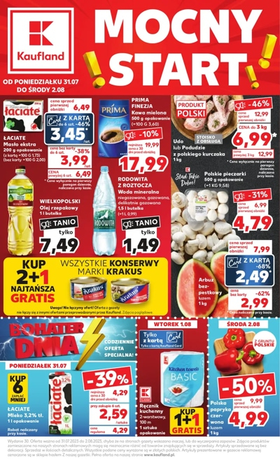 {loadposition linkKaufland} 'Mocny start!' - nowa gazetka promocyjna sieci marketów Kaufland. Polecane promocje z gazetki Kaufland: Masło ekstra Łaciate 200 g - 3,45 zł*. Kawa mielona Prima Finezja 500 g - 17,99 zł. Olej rzepakowy Wielkopolski 1 L -…