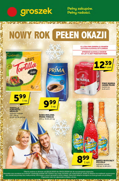 {loadposition linkGroszek} 'Nowy Rok pełen okazji' - nowa gazetka promocyjna sieci sklepów Groszek. Polecane promocje z gazetki Groszek: Tortilla Funtastic Develey wybrane rodzaje - 5,99 zł. Kawa mielona Prima Finezja 250 g - 9,99 zł. Napój musujący Piccolo 750…