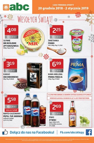 {loadposition linkABC} Nowa gazetka promocyjna sieci sklepów ABC. Polecane promocje z gazetki ABC: Słynne MR Roślinne ZPT Kruszwica 500 g - 4,08 zł. Kakao DecoMorreno 80 g - 3,19 zł. Kawa mielona Prima Finezja 250 g - 6,99 zł.…