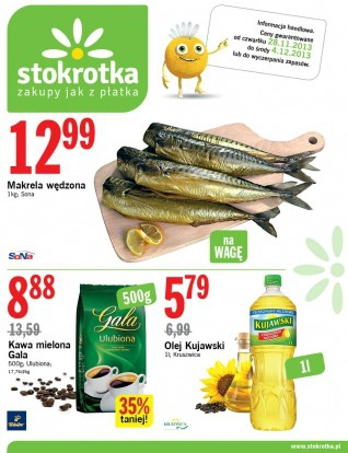 Nowa gazetka promocyjna sieci handlowej Stokrotka. Polecane promocje z gazetki Stokrotka: Makrela wędzona 1 kg - 12,99 zł. Kawa mielona Gala 500 g - 8,88 zł. Olej Kujawski 1 L - 5,79 zł. Oferta ważna od 28.11…