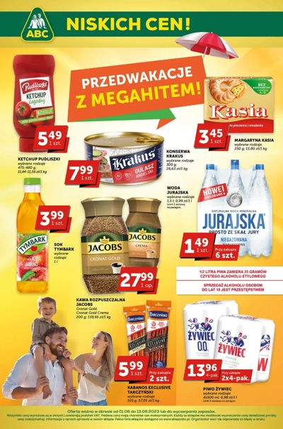 {loadposition linkABC} 'Przedwakacje z megahitem!' - nowa gazetka promocyjna sieci sklepów ABC. Polecane promocje z gazetki ABC: Sok Tymbark 1 L - 3,99 zł. Kawa rozpuszczalna Jacobs 200 g - 27,99 zł. Woda mineralna Jurajska 1,5 L - 1,49…