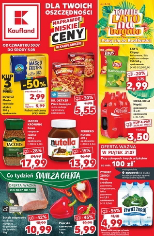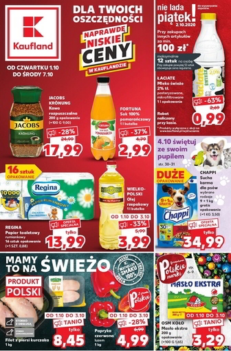 'Naprawdę niskie ceny' - nowa gazetka promocyjna sieci marketów Kaufland. Polecane promocje z gazetki Kaufland: Pizza Guseppe różne rodzaje i gramatury - 5,55 zł. Kawa rozpuszczalna Jacobs Kronung 200 g - 17,99 zł. Nutella 600 g…