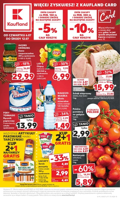 {loadposition linkKaufland3} 'Więcej zyskujesz z kartą Kaufland Card' - nowa gazetka promocyjna sieci marketów Kaufland. Polecane promocje z gazetki Kaufland: Kawa rozpuszczalna Jacobs Kronung 200 g - 29,99 zł. Chipsy Lay's 250 g - 6,99 zł. Ręcznik papierowy Foxy…