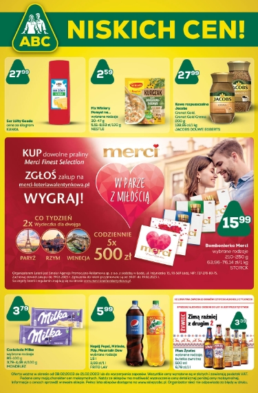 {loadposition linkABC} Nowa gazetka promocyjna sieci sklepów ABC. Polecane promocje z gazetki ABC: Ser żółty Gouda Kanka 1 kg - 27,99 zł. Fix Winiary Pomysł na... wybrane rodzaje - 2,59 zł. Kawa rozpuszczalna Jacobs 200 g - 27,99 zł.…