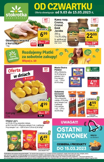 {loadposition linkStokrotka} Nowa gazetka promocyjna sieci sklepów Stokrotka. Polecane promocje z gazetki Stokrotka: Obiadowa ćwiartka z kurczaka 1 kg - 6,99 zł*. Kawa rozpuszczalna Jacobs 200 g - 22,99 zł**. Masło Ekstra Polskie Mlekovita 200 g - 4,99 zł***.…