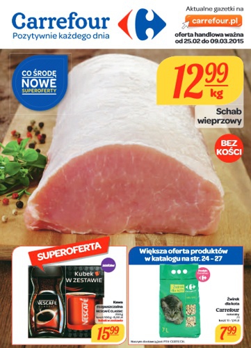 {loadposition linkCarrefour} Nowa gazetka promocyjna sieci handlowej Carrefour. Polecane promocje z gazetki Carrefour: Schab wieprzowy bez kości 1 kg - 12,99 zł. Kawa rozpuszczalna Nescafe Classic 200 g + kubek w prezencie - 15,99 zł. Żwirek dla kota naturalny…