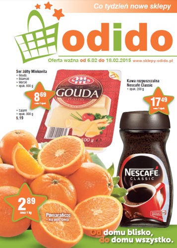 Nowa gazetka promocyjna sklepów Odido. Polecane promocje z gazetki Odido: Ser żółty Mlekovita 500 g - 8,69 zł. Kawa rozpuszczalna Nescafe Classic 200 g - 17,49 zł. Pomarańcze 1 kg - 2,89 zł. Oferta ważna od 6.02…