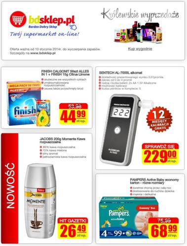 {loadposition linkBdsklep} Aktualna gazetka promocyjna supermarketu internetowego Bdsklep.pl - "Królewskie wyprzedaże". Polecane promocje z gazetki Bdsklep.pl: Alkomat SENTECH AL-7000L - 229 zł. Kawa rozpuszczalna JACOBS Momente 200 g - 26,49 zł. Pochłaniacz wilgoci 450g - 19,99 zł. Oferta…