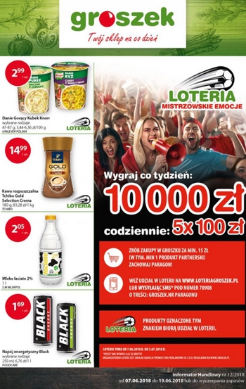 {loadposition linkGroszek} 'Mistrzowskie emocje' - nowa gazetka promocyjna sieci sklepów Groszek. Polecane promocje z gazetki Groszek: Danie Gorący Kubek Knorr wybrane rodzaje - 2,99 zł. Kawa rozpuszczalna Tchibo Gold Selection Crema 180 g - 14,99 zł. Napój energetyczny…