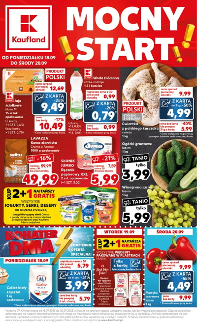 {loadposition linkKaufland} 'Mocny start!' - nowa gazetka promocyjna sieci marketów Kaufland. Polecane promocje z gazetki Kaufland: Regionalne świeże jaja z chowu ściółkowego K-Classic klasa M 15 sztuk - 9,49 zł*. Woda źródlana K-Classic 1,5 L - 0,79 zł*. Kawa…