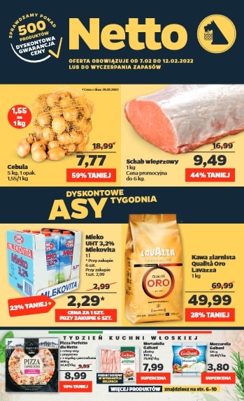 {loadposition linkNetto} 'Dyskontowe asy tygodnia' - nowa gazetka promocyjna sieci sklepów Netto. Polecane promocje z gazetki Netto: Cebula 5 kg - 7,77 zł. Schab wieprzowy 1 kg - 9,49 zł. Kawa ziarnista Lavazza Qualita Oro 1 kg - 49,99…