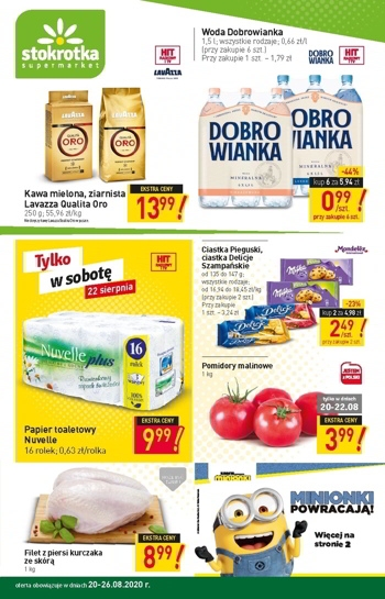 Nowa gazetka promocyjna sieci sklepów Stokrotka. Polecane promocje z gazetki Stokrotka: Kawa mielona lub ziarnista Lavazza Qualita Oro 250 g - 13,99 zł. Woda Dobrowianka 6x1,5 L - 5,94 zł. Filet z piersi kurczaka ze skórą 1 kg -…