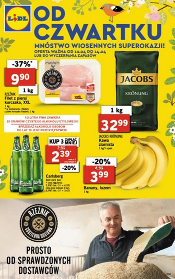 {loadposition linkLidl2} 'Od czwartku mnóstwo wiosennych superokazji' - nowa gazetka promocyjna sieci sklepów Lidl. Polecane promocje z gazetki sklepów Lidl: Filet z piersi kurczaka Rzeżnik XXL 1 kg - 9,90 zł. Kawa ziarnista Jacobs Kronung 1 kg - 32,99…