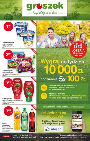 {loadposition linkGroszek} Nowa gazetka promocyjna sieci sklepów Groszek. Polecane promocje z gazetki Groszek: Jogurt Jogobella Zott 150 g - 1,19 zł. Żelki Śmiejżelki 90 g - 2,59 zł. Ketchup Kotlin 450 g - 3,29 zł. …