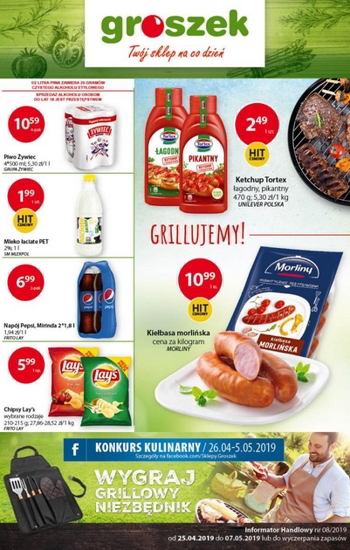 {loadposition linkGroszek} Nowa gazetka promocyjna sieci sklepów Groszek. Polecane promocje z gazetki Groszek: Ketchup Tortex 470 g - 2,49 zł. Kiełbasa Morlińska Morliny 1 kg - 10,99 zł. Piwo Żywiec 4x500 ml - 10,59 zł. Oferta…