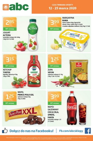 {loadposition linkABC} Nowa gazetka promocyjna sieci sklepów ABC. Polecane promocje z gazetki ABC: Jogurt Danone Activia 280 g - 2,85 zł. Margaryna Rama 450 g - 3,99 zł. Ketchup Tortex 470 g - 3,15 zł. …