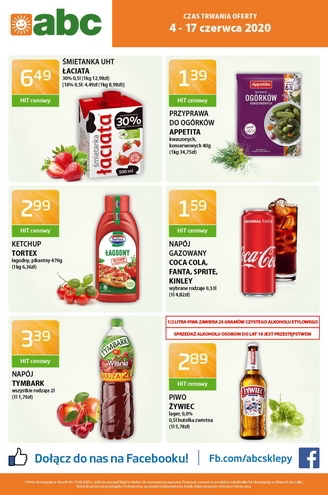 {loadposition linkABC} Nowa gazetka promocyjna sieci sklepów ABC. Polecane promocje z gazetki ABC: Śmietanka Łaciata 500 ml - 6,49 zł. Przyprawa do ogórków Apetita 40 g - 1,39 zł. Ketchup Tortex 470 g - 2,99 zł. Oferta…