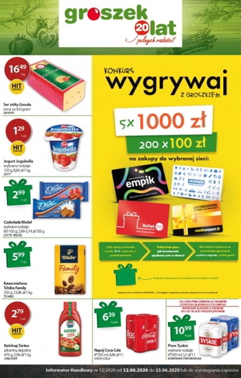{loadposition linkGroszek} Nowa gazetka promocyjna sieci sklepów Groszek. Polecane promocje z gazetki Groszek: Ser żółty Gouda SM Ryki 1 kg - 16,49 zł. Jogurt Jogobella Zott 150 g - 1,29 zł. Ketchup Tortex 470 g - 2,79 zł.…