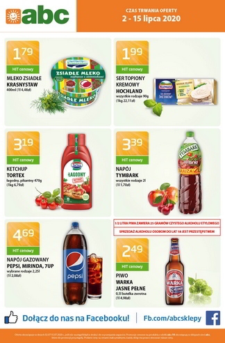 {loadposition linkABC} Nowa gazetka promocyjna sieci sklepów ABC. Polecane promocje z gazetki ABC: Mleko zsiadłe Krasnystaw 400 ml - 1,79 zł. Ser topiony Hochland 90 g - 1,99 zł. Ketchup Tortex 470 g - 3,19 zł. Oferta…