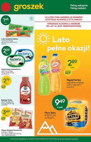 {loadposition linkGroszek} Nowa gazetka promocyjna sieci sklepów Groszek. Polecane promocje z gazetki Groszek: Lody Koral Kolorowe Lato 1 L - 6,99 zł. Masło Laktopol 200 g - 3,89 zł. Ketchup Tortex 470 g - 2,59 zł. Oferta…